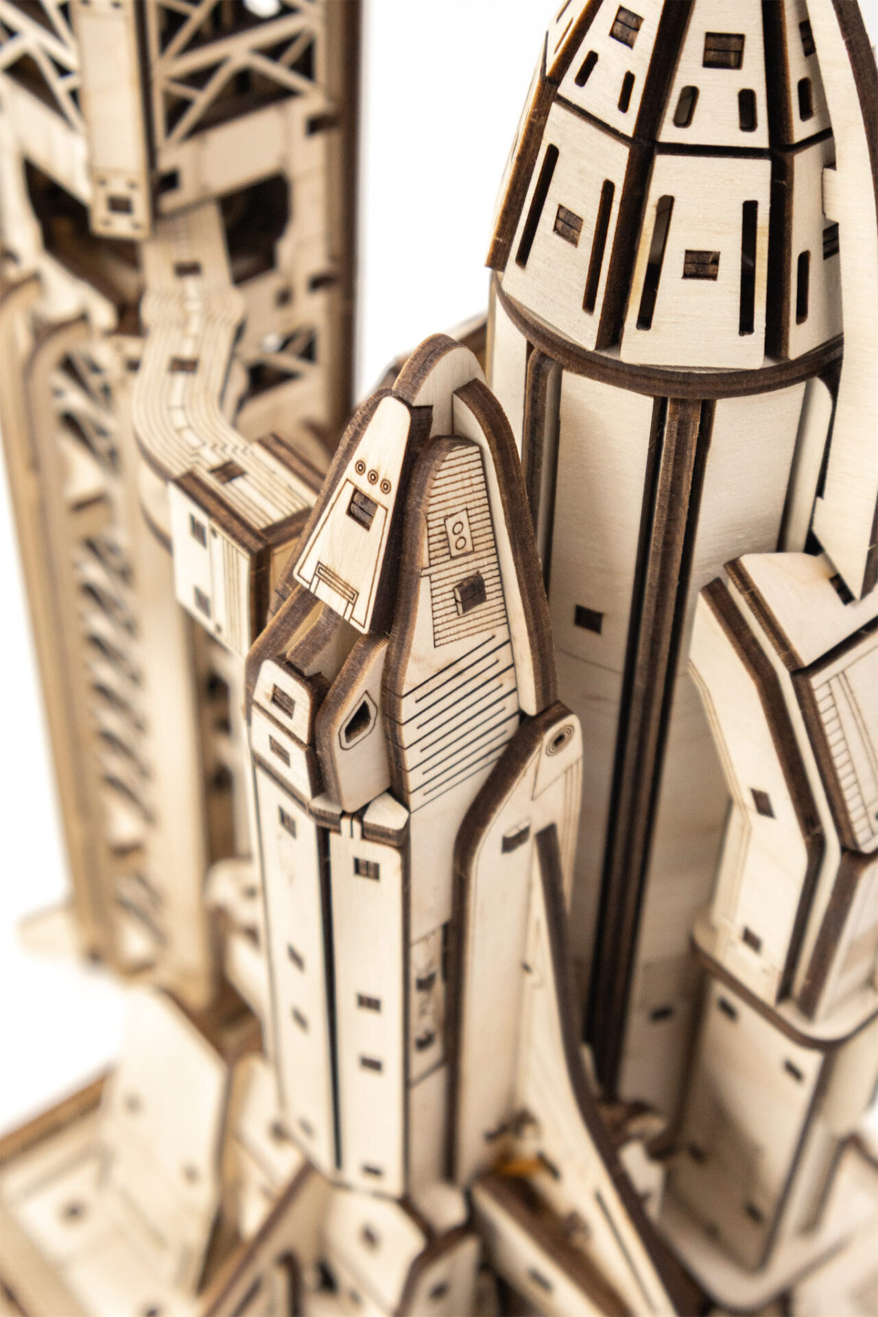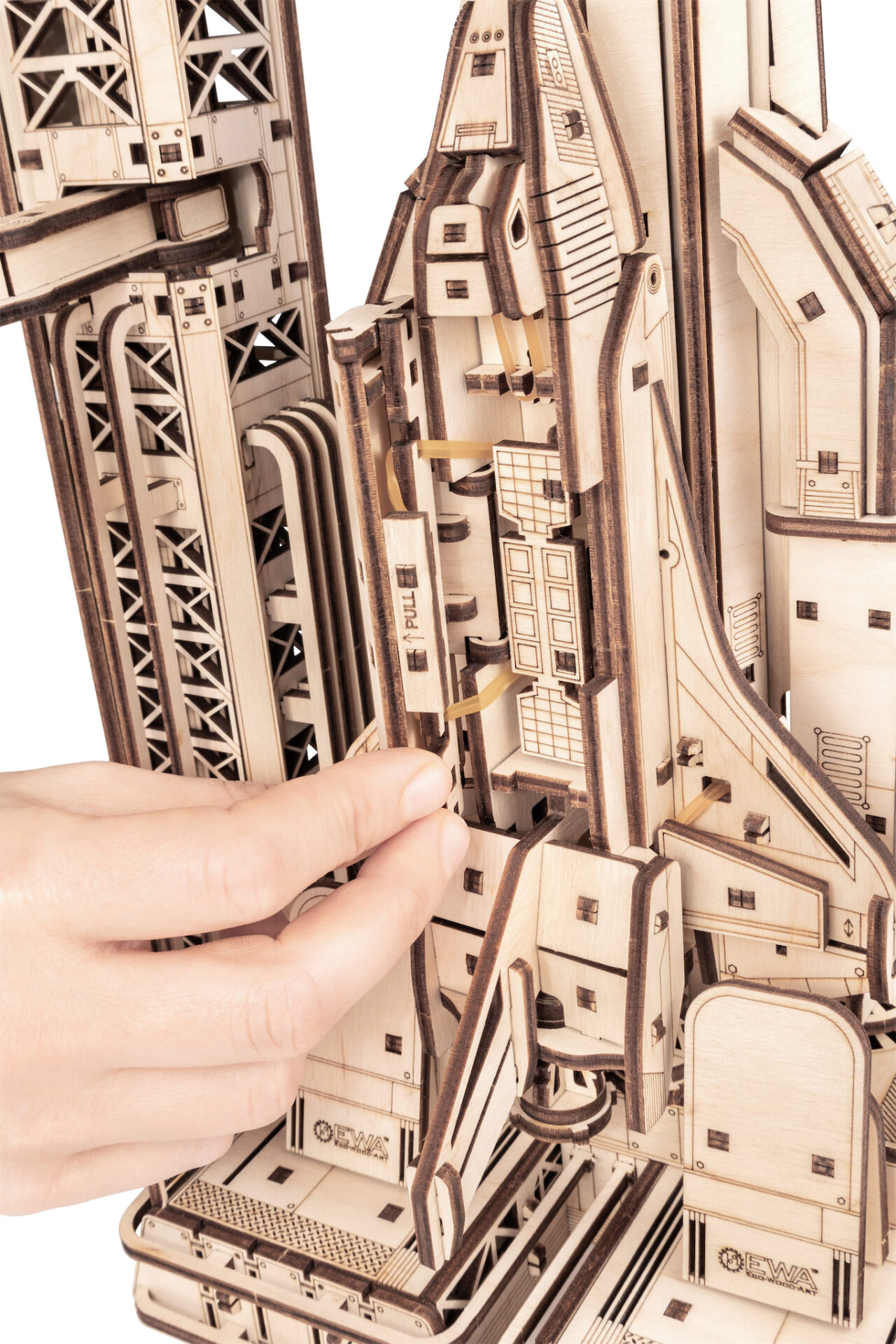 Baue eine Nachbildung eines legendären Raumfahrzeugs, ausgestattet mit zwei Boostern und einer dynamischen Startrampe. Dieses 3D-Holzmodell fängt den Geist echter Weltraummissionen ein und ist ein perfektes Geschenk für alle, die von den Sternen träumen.