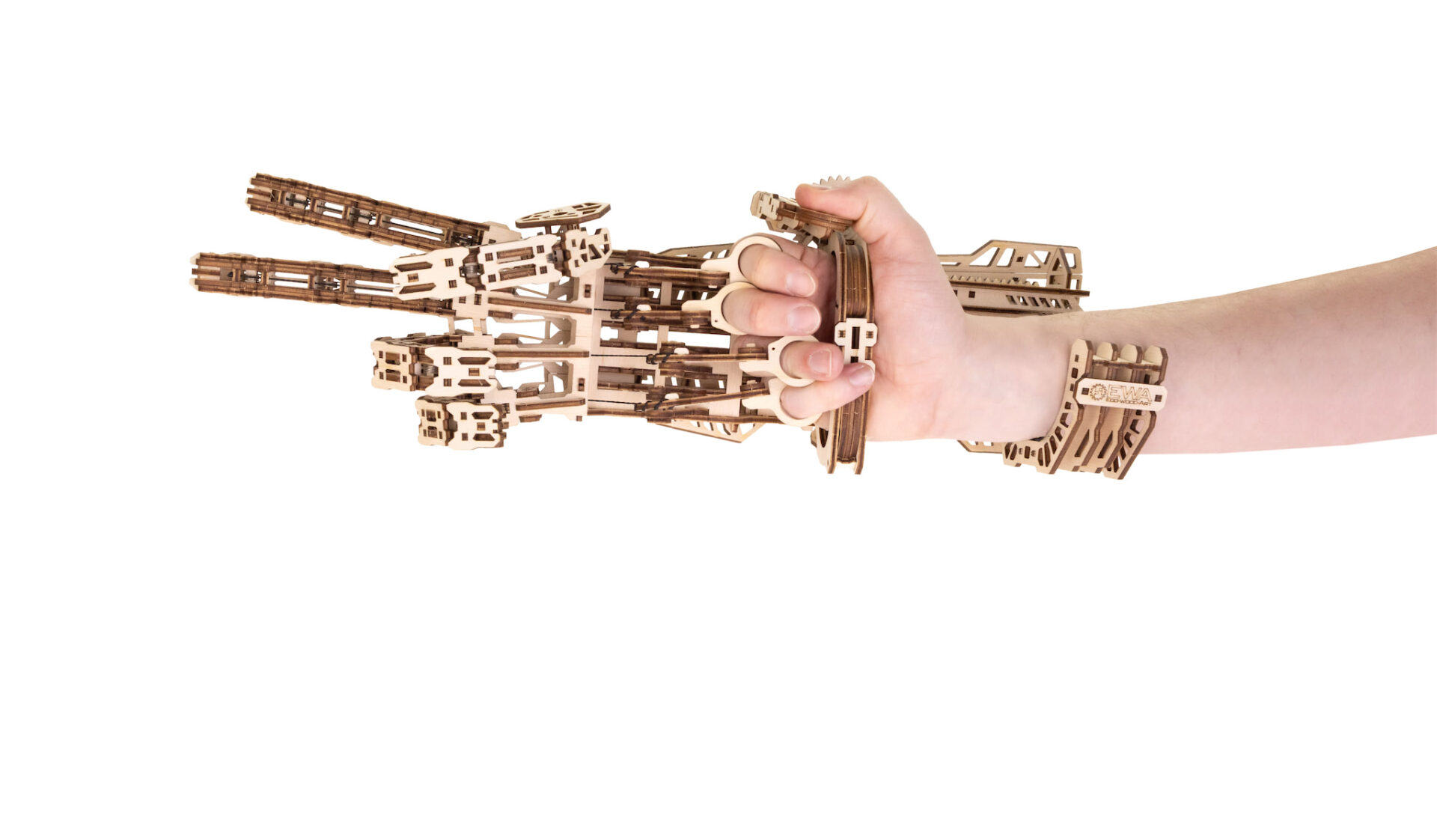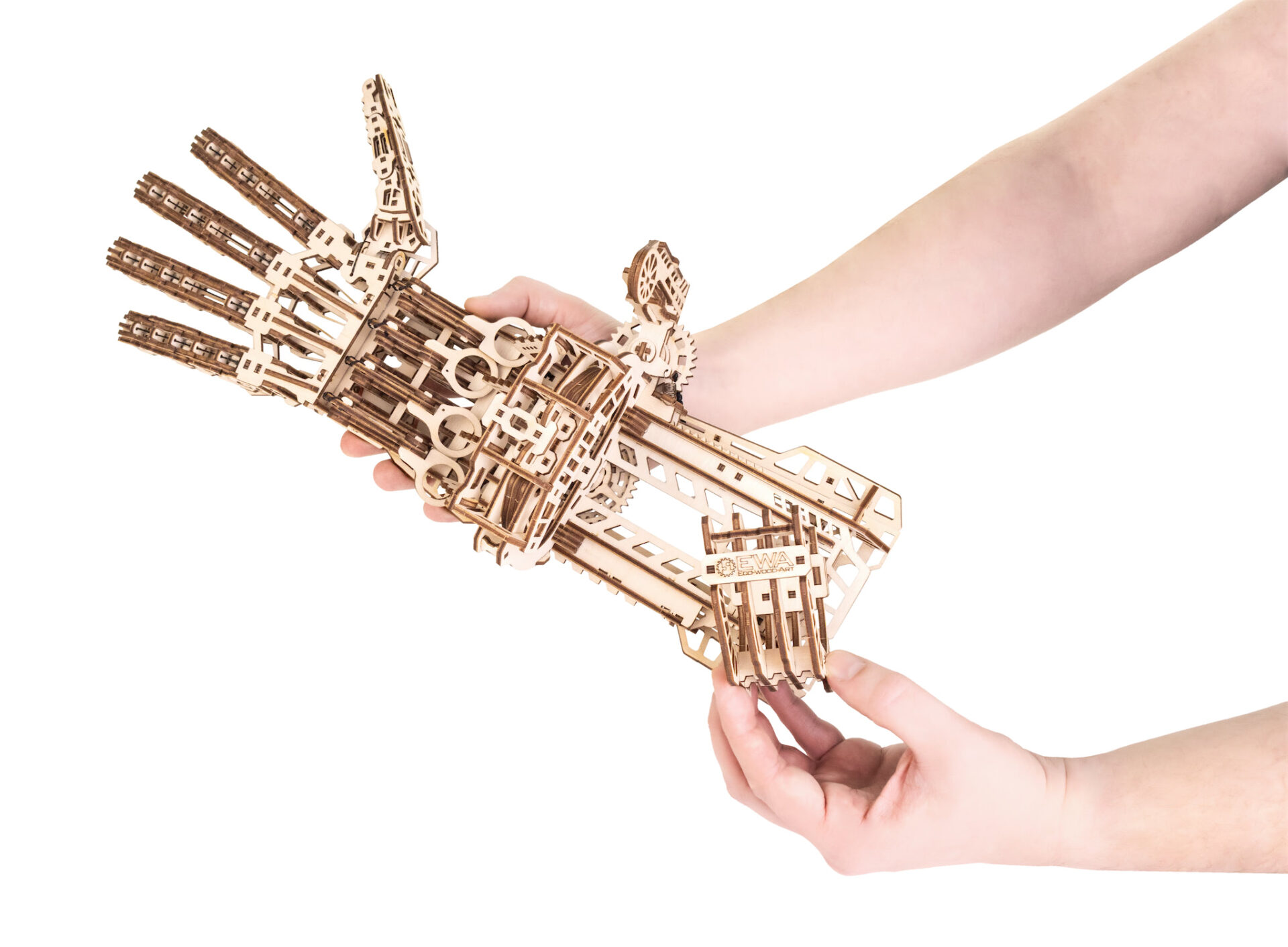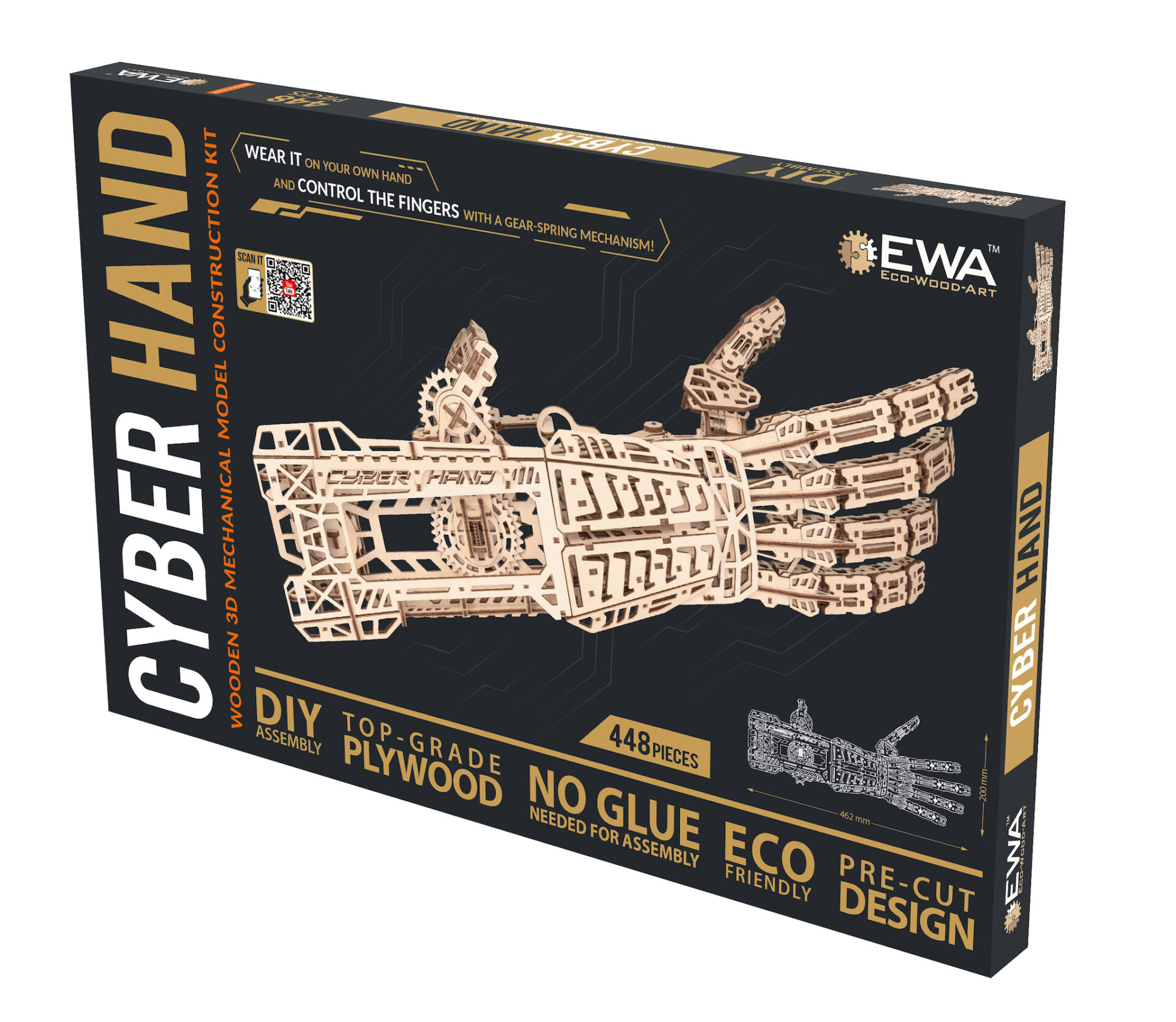 Cyber Hand is a wooden mechanical construction kit for those who enjoy complex, well-engineered, and visually striking models. It is one of the most challenging builds in the collection, featuring 448 precisely fitted parts and metal springs inside that bring the mechanism to life.