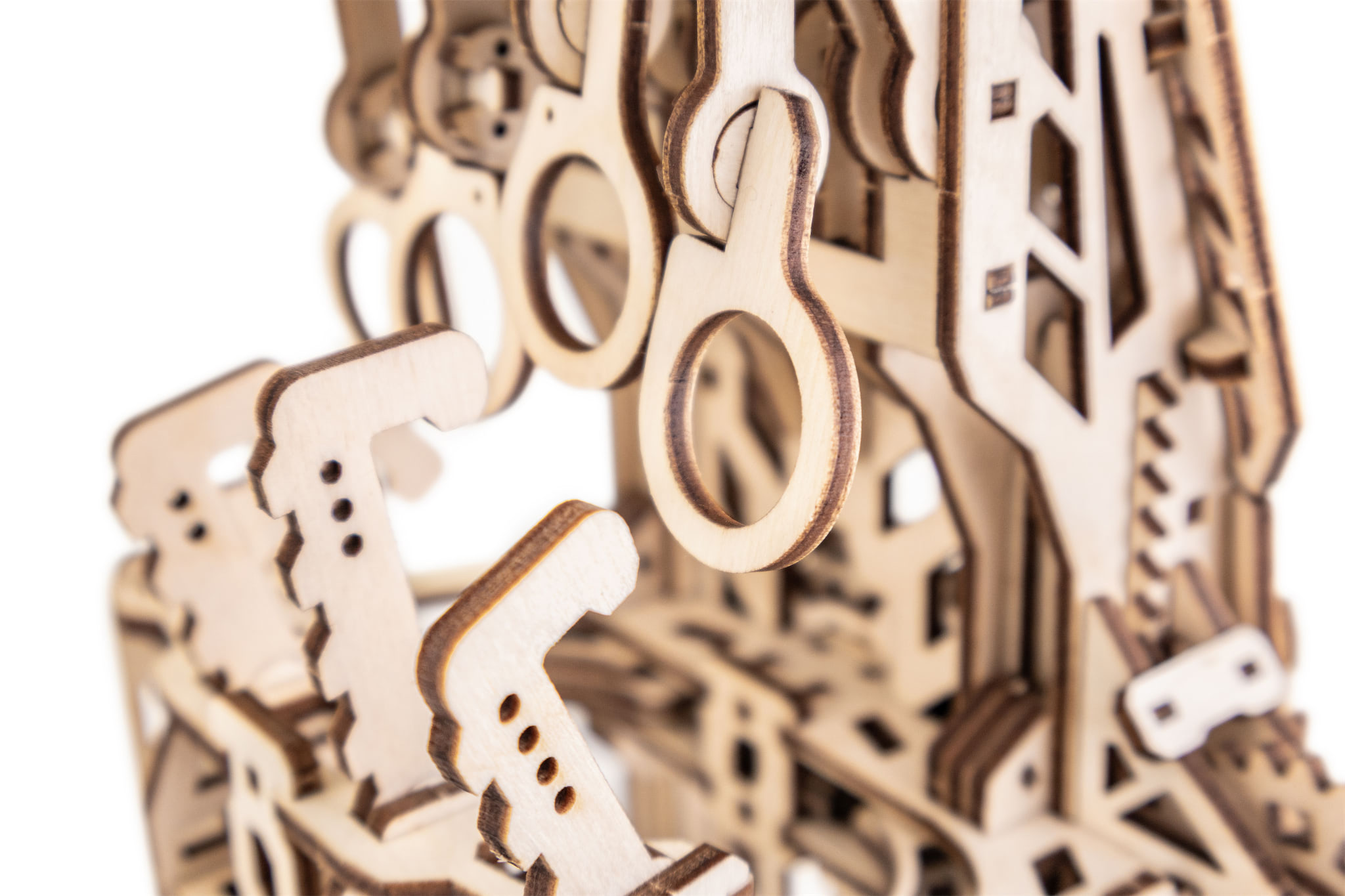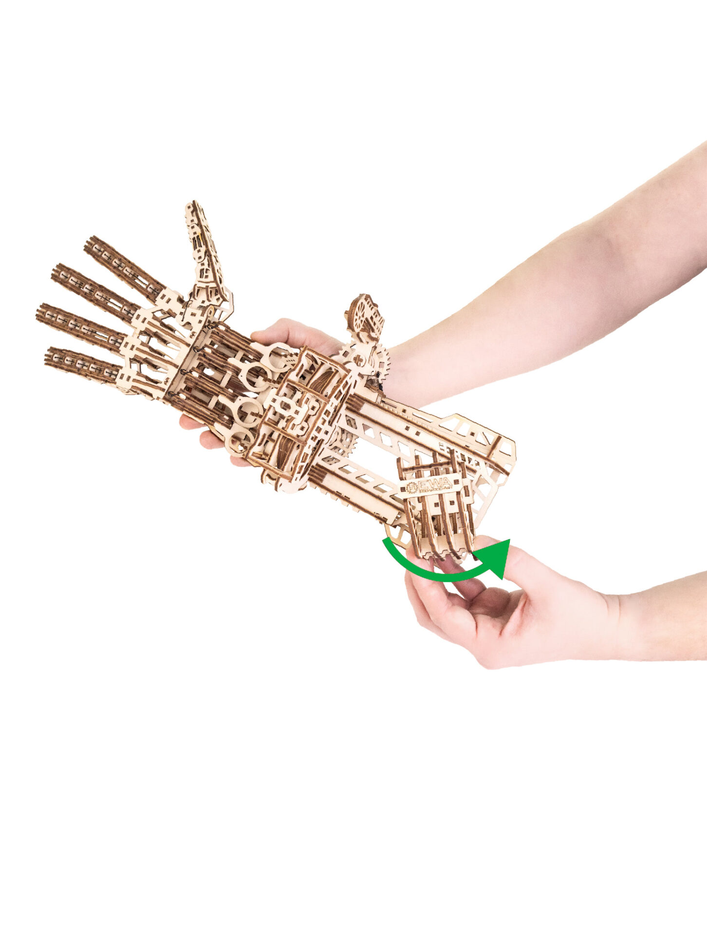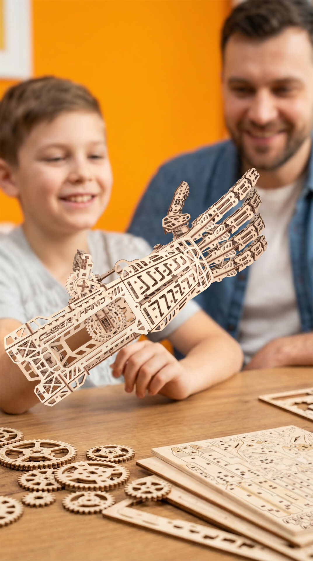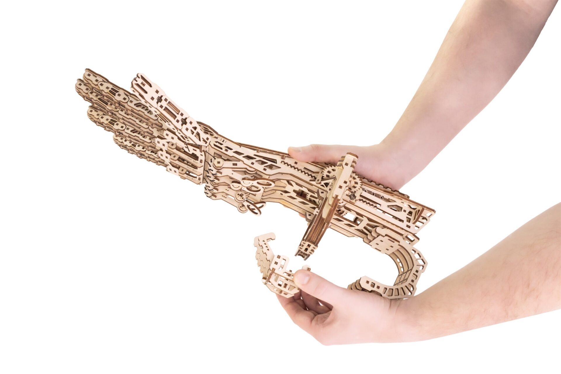 Cyber Hand is a wooden mechanical construction kit for those who enjoy complex, well-engineered, and visually striking models. It is one of the most challenging builds in the collection, featuring 448 precisely fitted parts and metal springs inside that bring the mechanism to life.